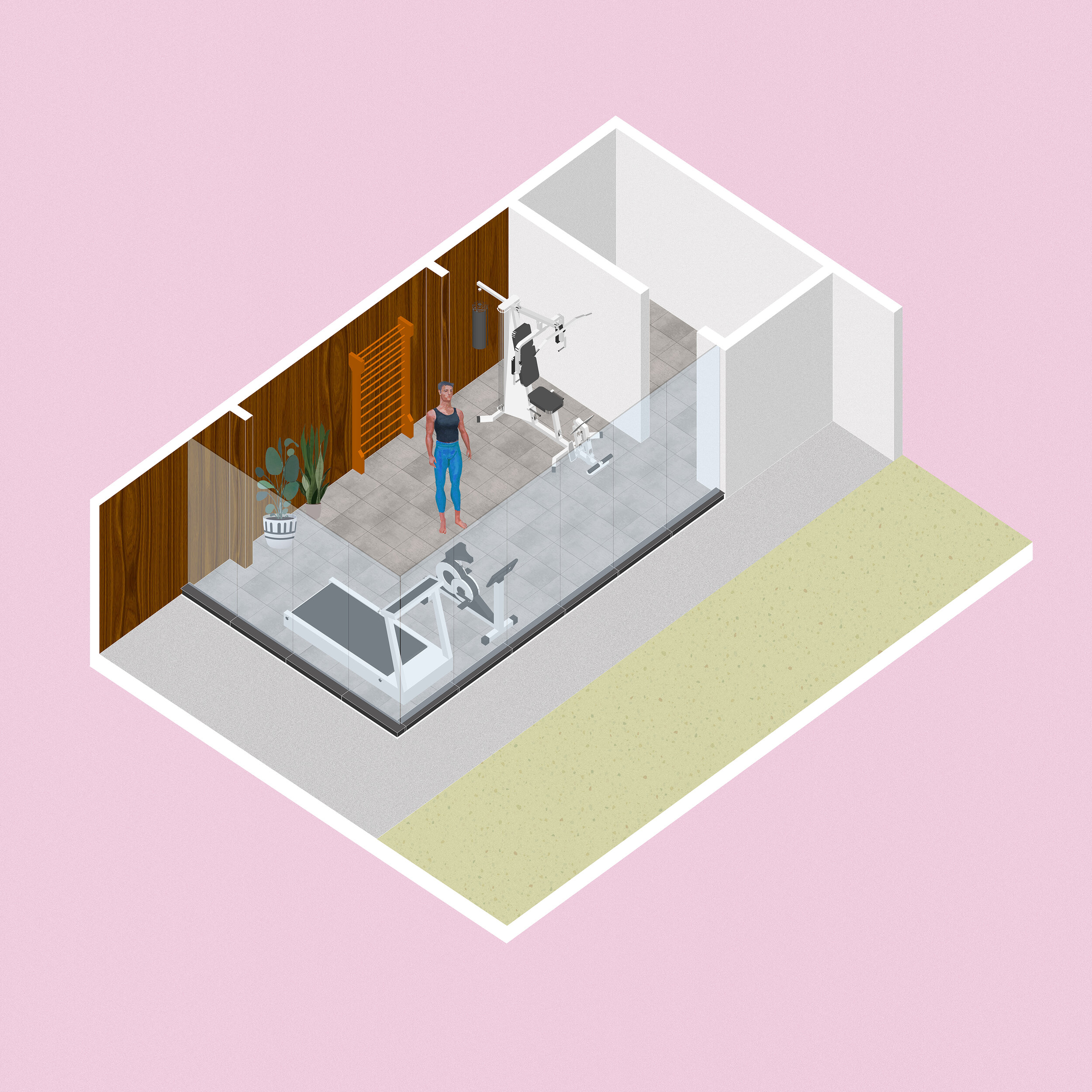 The client's first requirement was to have a pop-up gym so the space could be transformed in case a family event required it.